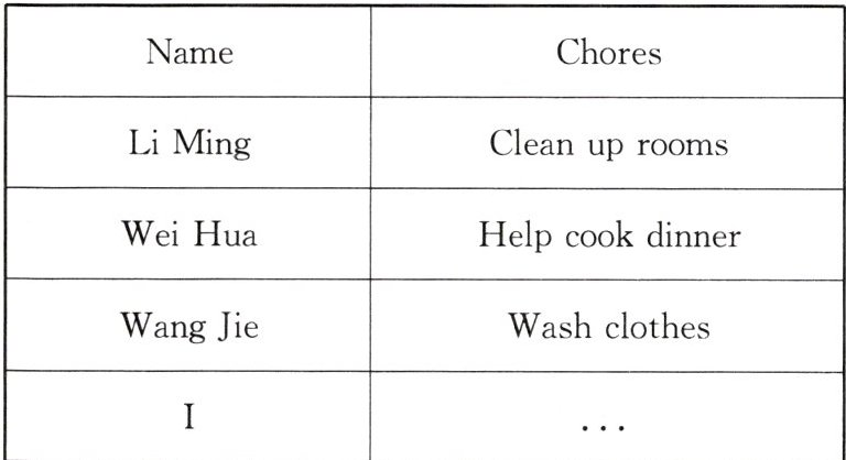 汇报内容:你和同学所做的家务活;你对做家务活的看法。