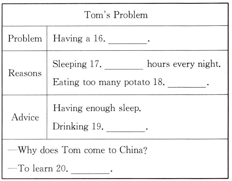 (四)录音中有一篇独白,根据所听到的内容,写出可以填入下表 16 至 20 空格处的适当单词,每空限填一词。(独白读两遍)
