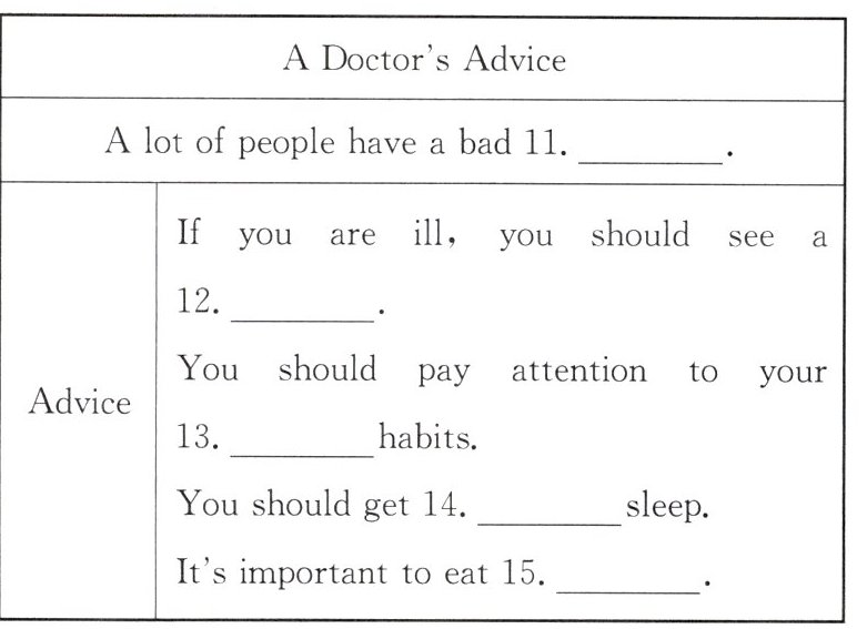 11. cold 12. doctor 13. living 14. enough 15. healthily