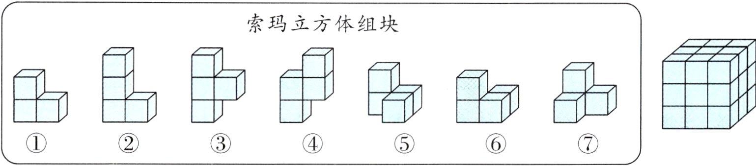 1. 新情境 索玛立方体是一种益智玩具,由7个不同形状的组块组成,这7个组块恰好组成一个大正方体。(填序号)(主要对应目标:4203)