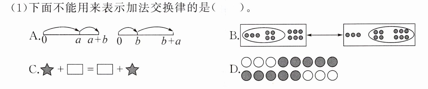 答:3+4=4+3,猴子每天没有多吃橡果,故事中体现了加法交换律。
