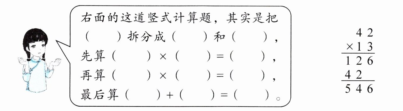 1. 新角度 通过今天的学习,我知道了乘法竖式计算其实运用了乘法分配律。(主要对应目标:4301)
