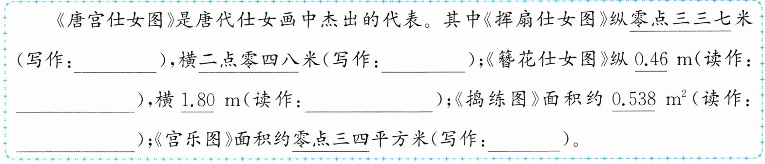 4.“失之毫厘,差之千里”马小虎在读一个小数时,没有看到小数点,结果读成了四万五千零一。原来的小数读出两个0,原来的小数是多少?(主要对应目标:4402)