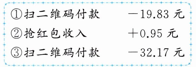 4.(湖南长沙)妈妈的手机钱包里原来有83.05元,今天的手机收支账单如图所示。现在手机钱包里有多少钱?(主要对应目标:4605)