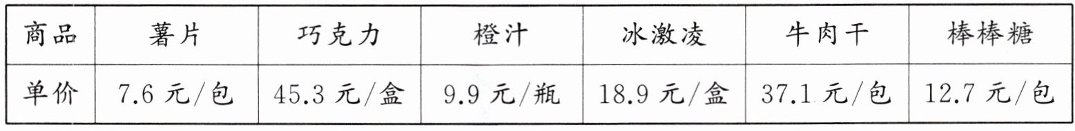 (2)①45.3+9.9+37.1=92.3(元) 92.3<99.9 99.9−92.3=7.6(元) 答:她不能参加此次促销活动。 建议她至少再买一包薯片就能参加此次促销活动。(建议合理即可) ②92.3+18.9−9.9=101.3(元) 答:丽丽实际需要支付101.3元。
