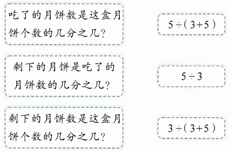 月饼是一种传统美食,寓意团团圆圆。妈妈买了一盒月饼,吃了3个,剩下5个。