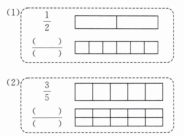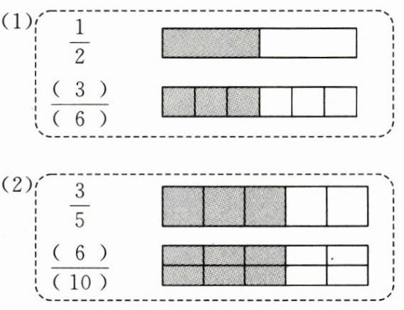 1. 涂色表示与给定分数相等的分数并填空。(主要对应目标:5402、5405)