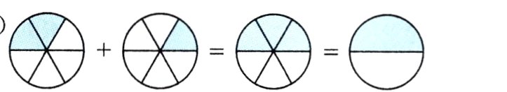 (1)$\frac{2}{6}$ $\frac{1}{6}$ $\frac{2 + 1}{6}$ $\frac{1}{2}$