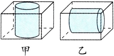 2.(浙江杭州)一个圆柱形零件,把它浸入一个装水的容器中,两种摆法都恰好有一半浸没在水中(如甲、乙两图所示)。下面说法正确的是( )。(选一选)(主要对应目标:6306)
