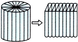 (1)把圆柱切拼成一个近似的长方体,( )不变,这个长方体的长等于圆柱的( ),宽等于圆柱的( ),高等于圆柱的( ),所以圆柱的体积=( )×( )。用字母表示为V=( )=( )。