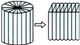 5.9.42×3×8=226.08(cm³) 将圆柱切割再拼成一个近似长方体,长方体的长是圆柱底面周长的一半,宽是圆柱的底面半径,高是圆柱的高,长方体的体积与圆柱的体积相等。(说法不唯一,合理即可)