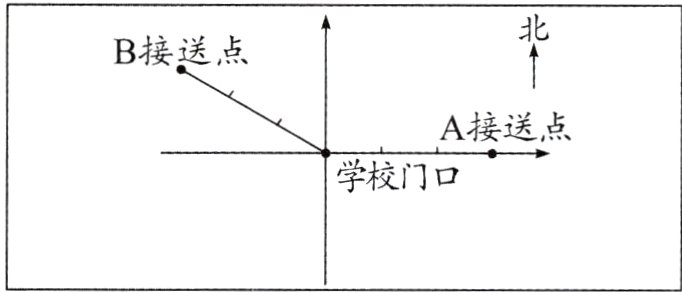 (2)B接送点在学校门口西偏( )( )°方向( )m处。