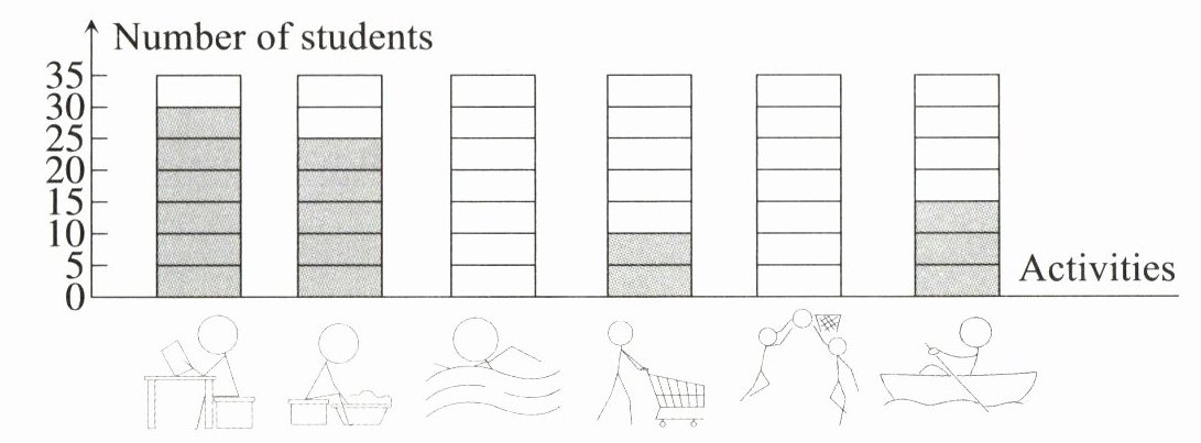 There are 45 students in Class One,Grade Six. They did different activities on their weekends.