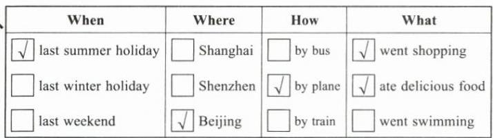 四、听录音,根据短文内容,在相应的方框中画“√”。(10分)