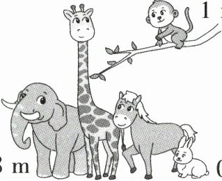 1.one/1 metre 2.shorter 3.taller 4.Yes, it is. 5.Giraffe is the tallest.