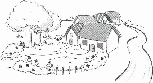 三、下面是十年前ZhangHong所在村庄的图片。听录音,根据图片内容,判断所听句子的正误,在相应的方框内画"√”。(10分)
