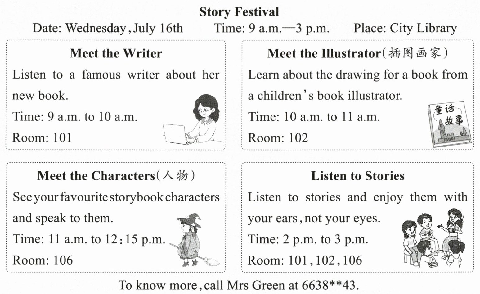 ( )3. If you want to know more about this festival, you can phone Mrs Green.