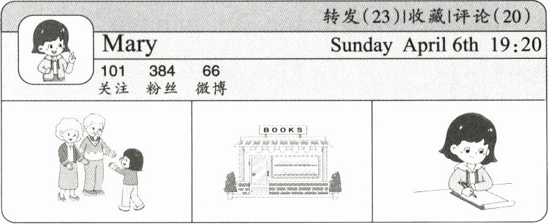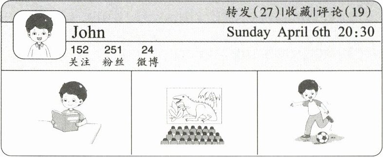 六、John和Mary在某社交软件上分享了自己上周日的活动,请你写一篇短文描述一下他们的活动。(10分)