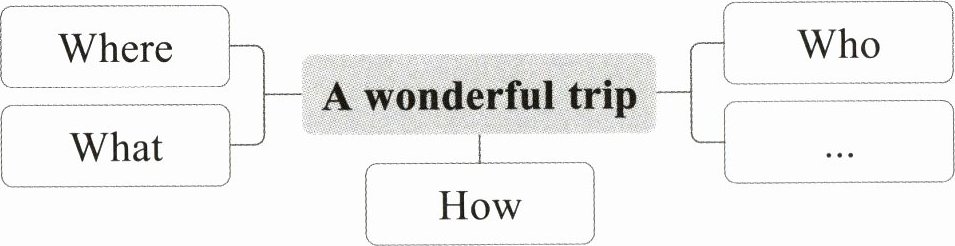 哪一次旅行最令你难忘呢?请以“Awonderfultripto______________”为题,结合下面的思维导图,写一写自己美好的旅程吧。(10分)