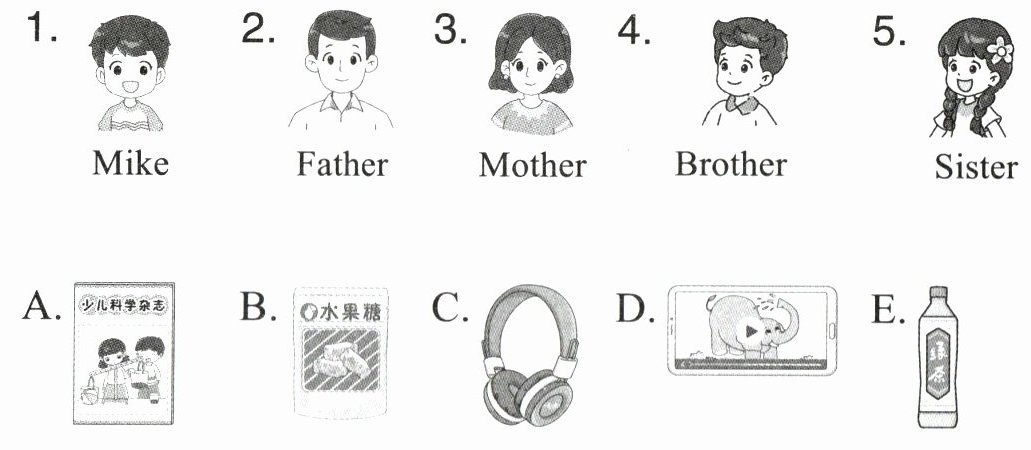 二、Mike一家人顺利登机,他们正在飞机上做什么呢?听录音,将下列人物与相关的图片连线。(5分)