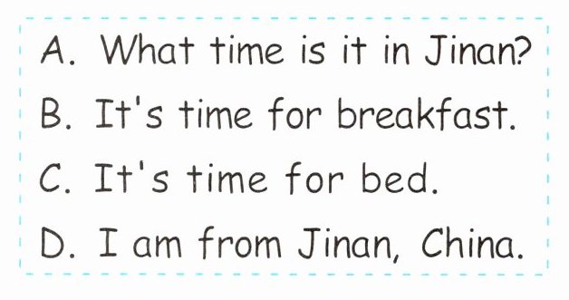 二 来自纽约的小朋友 Lily 和来自济南的小朋友王玲成了好友,她们聊起了两地的时差问题,请补全她们的对话吧!