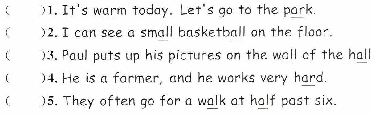 三 读句子,找出每个句子中与所给例词画线部分有相同读音的单词,并写在横线上。