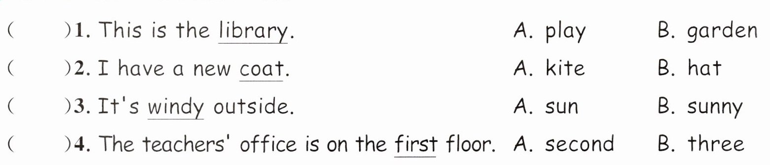 ( )3. Where's the computer room? A. It's on the first floor. B. It's on the second floor.