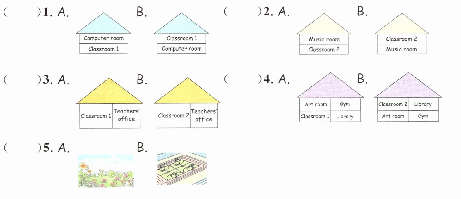 四 新学期开始了,Mike 正在向新生介绍自己的学校。听录音,选择符合录音内容的图片。