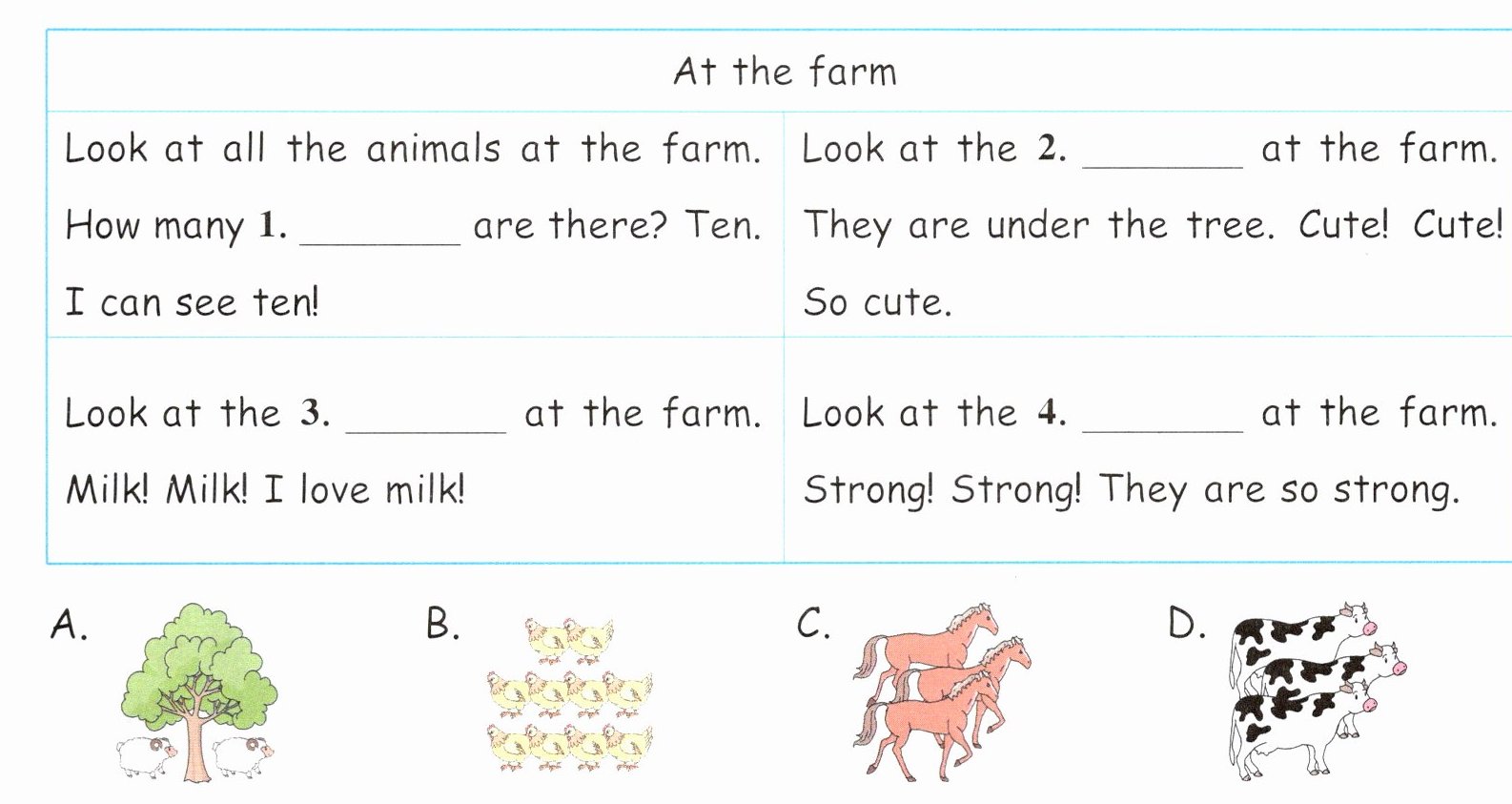 一 阅读短文,圈出短文中提到的蔬菜和动物的图片序号。
