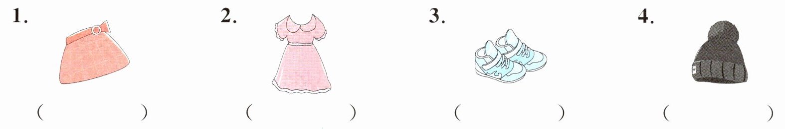 Look at these clothes. They are nice. This dress is Sarah's. It's pink. Look at that hat. It's Peter's. It's black. I like orange very much. So I have an orange skirt. Oh, my name is Liu Ying. The blue shoes are Amy's. She likes them very much.