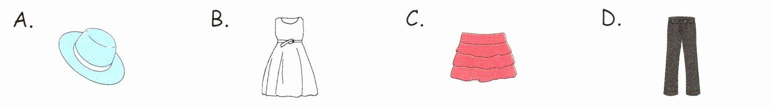 C@@skirt@@D@@pants@@A@@hat@@B@@dress