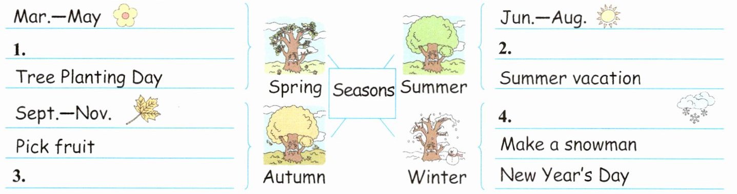 二 根据自己喜欢的季节和喜好,完成思维导图。