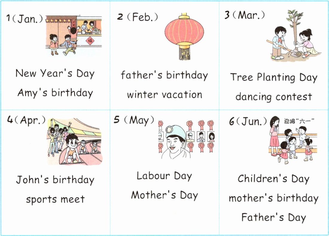 ( )1. Father's birthday is in June. ( )2. The sports meet is in March.