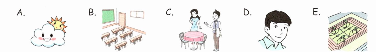 1. _assroom 2. un_e 3. _ayground 4. _oudy 5. _ease