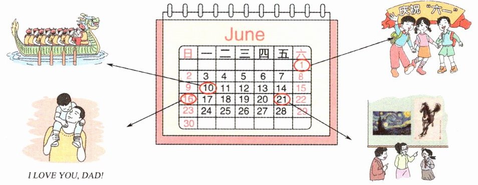 一 根据句意,选出正确的图片,并用英语写出节日所在的月份或具体的日期。