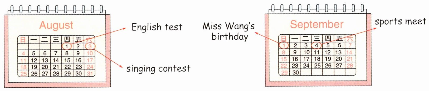 四 阅读日历,回答问题。