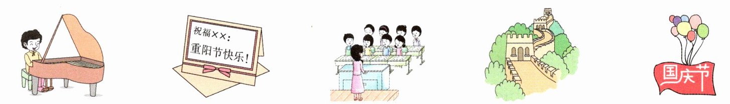 Hi! I'm Yangyang. I'm busy in October. China's National Day is on October 1st. Double Ninth Festival(重阳节) is a traditional Chinese festival. It is on October 11th this year. I'll make a card for my grandparents. The English test is on October 16th. I'll play the piano for my mum on October 20th. That's my mum's birthday. The school trip is in October, too. We'll go to the Great Wall on October 24th. What a busy month!