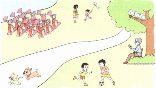 F@@F@@T@@They're dancing.@@No, he isn't.@@She's flying a kite with her mum.
