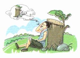 The next day, the farmer didn't go to work on the farm. He sat under the same tree and waited for more rabbits. He waited and waited, but no rabbit came. At last (最后), he was too hungry and died under the tree.
