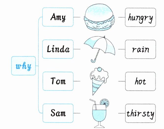 例:—Why are you eating a hamburger, Amy? —Because I am hungry.