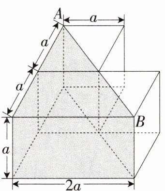 20 新考法 如图,将一块棱长分别为$2a$,$a$,$a$的长方体和一块棱长为$a$的正方体组合在一起,再沿线段$AB$竖直将其切开得到一个阴影三棱柱,求余下几何体的体积。