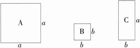 5 小羽制作了如图所示的卡片A类,B类,C类各50张,其中A,B两类卡片都是正方形,C类卡片是长方形,现要拼一个长为$(5a + 7b)$,宽为$(7a + b)$的大长方形,那么所准备的C类卡片的张数 ( )