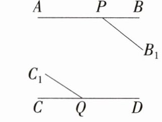 15 新趋势 探究性问题 如图,在两条笔直且平行的景观道AB,CD上放置P,Q两盏激光灯。其中光线PB按顺时针方向以每秒5°的速度旋转至边PA便立即回转,并不断往返旋转;光线QC按顺时针方向以每秒3°的速度旋转至边QD就停止旋转,此时光线PB也停止旋转。若光线QC先旋转4 s,光线PB才开始旋转,当PB₁//QC₁时,光线PB旋转的时间为________s。