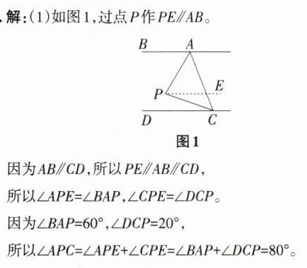 (1)如图1,点P在直线AB,CD之间,当∠BAP=60°,∠DCP=20°时,求∠APC的度数;