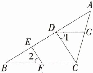 6 如图,点D,E在直线AB上,点F,G分别在线段BC,CA上(不与端点A,B,C重合),且DG//BC,∠1 =∠2。试判断直线EF与直线DC的位置关系,并说明理由。
