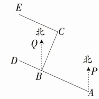 7 [教材P54T9 ]如图,某工程队从A点出发,沿北偏西67°方向修一条公路AD,在BD段出现塌陷区,于是改变方向,由B点沿北偏东23°的方向继续修建BC段,到达C点又改变方向,从C点继续修建CE段。若使所修路段CE//AB,则∠ECB应为多少度?试说明理由。此时CE与BC有怎样的位置关系?