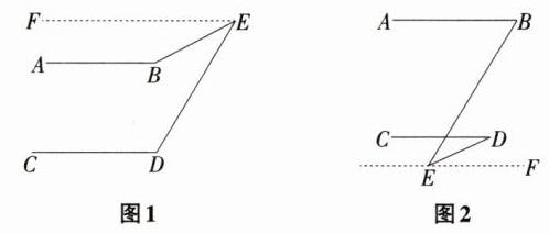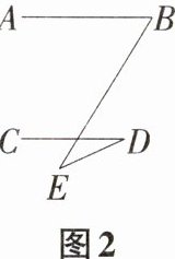 如图2,过点E作EF//AB。 因为AB//CD,所以AB//EF//CD, 所以∠B = ∠BEF,∠D = ∠DEF。 因为∠BED = ∠BEF - ∠DEF,所以∠BED = ∠B - ∠D, 所以∠B = ∠D + ∠BED,即∠B = ∠D + ∠E。