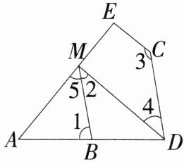 6(河南周口西华县阶段练习)如图,已知∠1=∠BDC,∠2+∠3=180°。若DM平分∠BDC,CE⊥ME于点E,∠1=78°,则∠5的度数为( )