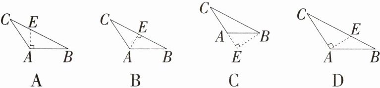 1 在数学课上,同学们在练习画AC边上的高时,出现下列四种图形,其中正确的是 ( )