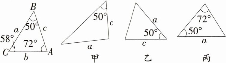 7 [教材P106T2 ]如图,已知△ABC的六个元素,则甲、乙、丙三个三角形中能利用AAS判定与△ABC全等的图形是 。